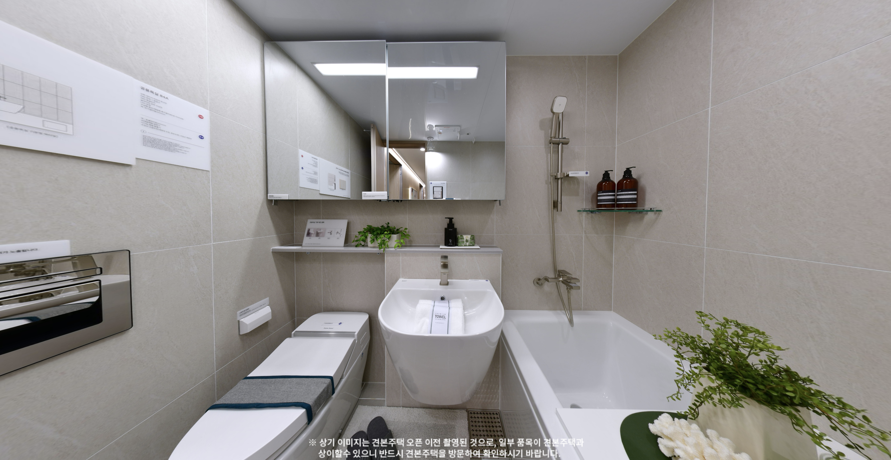고급 마감재를 기본 적용하며, 주방 상판과 벽체에 엔지니어드스톤이 사용됩니다. LED 조명, 고급 욕실 상부장, 비데일체형 양변기 등이 기본 제공되며, 타입별로 빌트인 가전도 옵션으로 제공됩니다. 실용성과 품격을 모두 갖춘 인테리어가 인상적입니다.