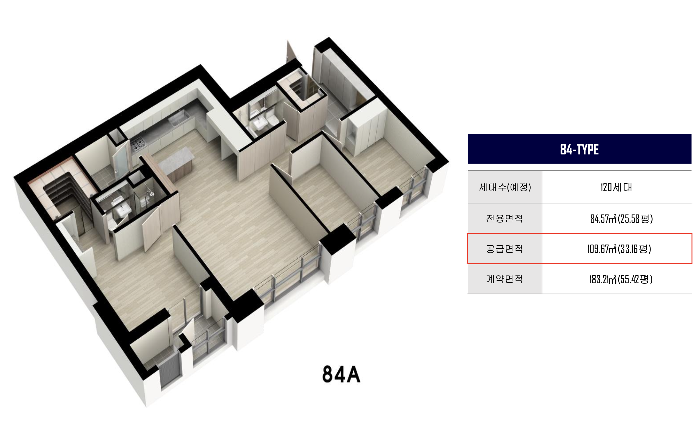 대표 평형인 84㎡는 3개의 침실과 2개의 욕실, 드레스룸과 팬트리를 포함한 실속형 구조로 설계되었습니다. 남향 위주의 배치로 채광과 환기를 극대화했고, 일부 세대에서는 한강 조망이 가능합니다.