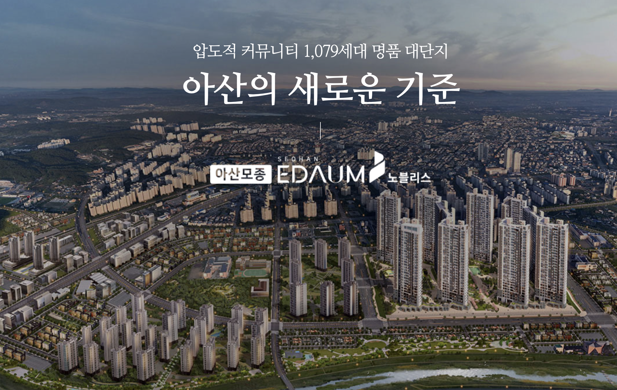 아산모종 서한이다음 노블리스는 충남 아산시 모종샛들지구에 조성되는 1,079세대의 대단지 아파트로, 풍기역(예정)과 삼성디스플레이시티·탕정산업단지를 배후에 둔 직주근접 입지를 갖춘 단지입니다. 지하 2층부터 지상 29층까지 총 10개동으로 구성되며, 969세대의 미분양 가구에 대하여 선착순 동호지정 계약이 진행되고 있습니다. 아산모종 서한이다음 노블리스는 모종1·2지구와 풍기역지구(예정)를 포함한 약 1만 세대의 신흥주거벨트 핵심에 자리하며, 입주는 2028년 9월로 예정되어 있습니다.