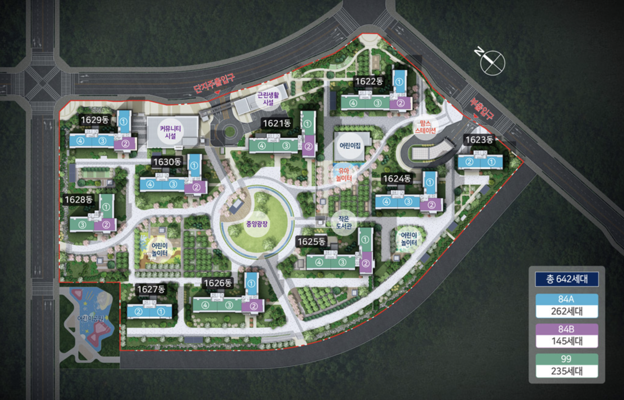 입주민을 위한 피트니스센터, 실내 골프연습장, 어린이집, 경로당, 주민카페 등 다양한 커뮤니티 공간이 마련되어 있습니다. 중앙광장과 녹지형 산책로가 조화를 이루며, 여가와 휴식을 모두 즐길 수 있는 쾌적한 단지로 설계되었습니다.