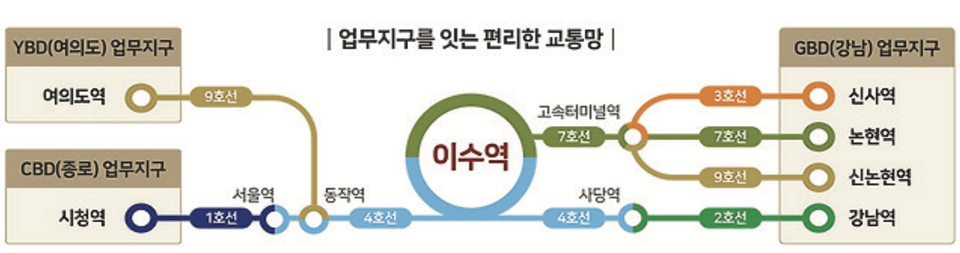 이수역을 이용해 4호선과 7호선을 모두 활용할 수 있어 서울 주요 지역 이동이 용이합니다. GTX-D 추진, 사당역 복합환승센터 개발, 이수~과천 복합터널 계획이 더해지며 교통망 확장 가능성이 높습니다. 향후 교통 개선이 이어질 경우 이동 편의성은 더욱 향상될 전망입니다.