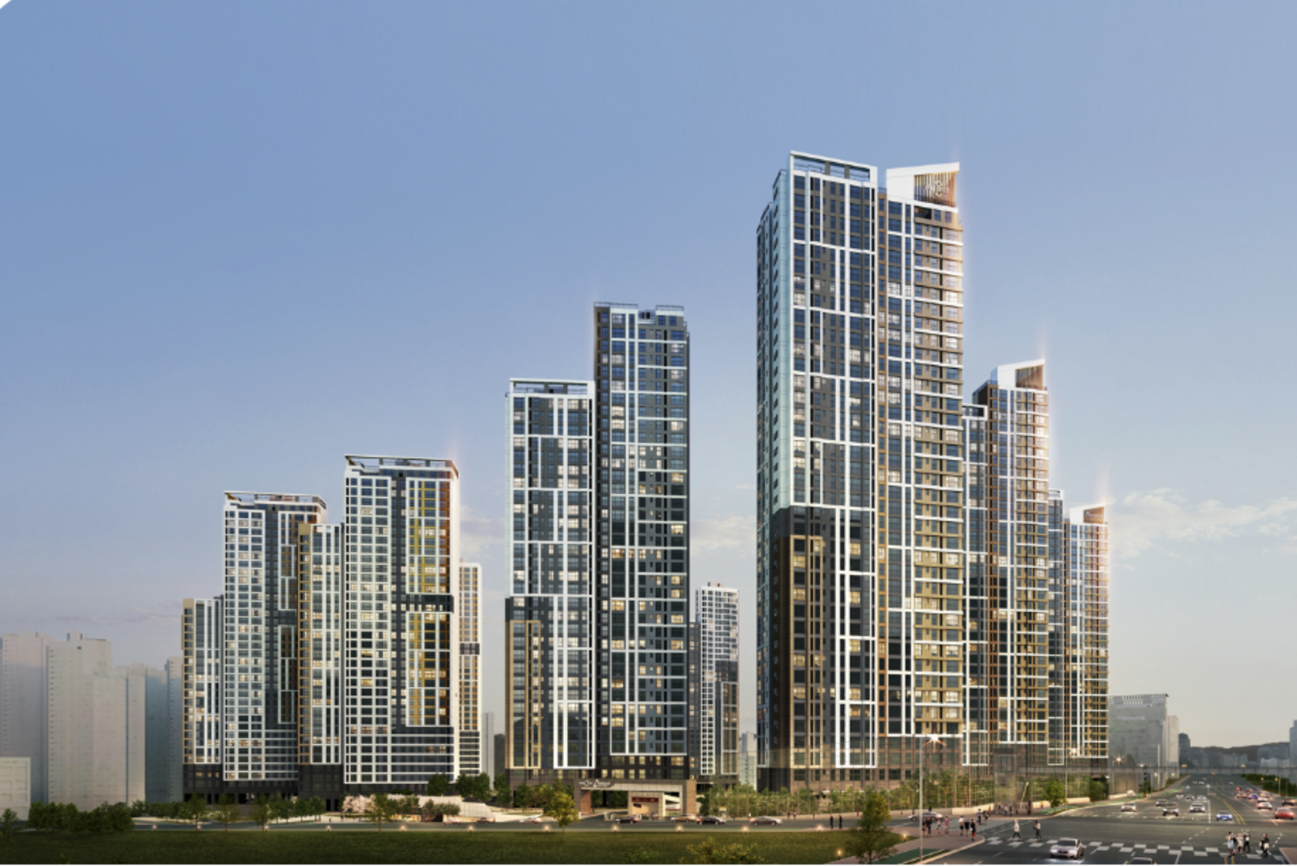 전용 84~201㎡ 구성으로 선택 폭이 넓습니다. 남동, 남서 중심 배치로 채광과 통풍이 유리하게 설계되었습니다. 최대 120.1m 동간거리 확보로 개방감과 프라이버시가 강화된 구조입니다.