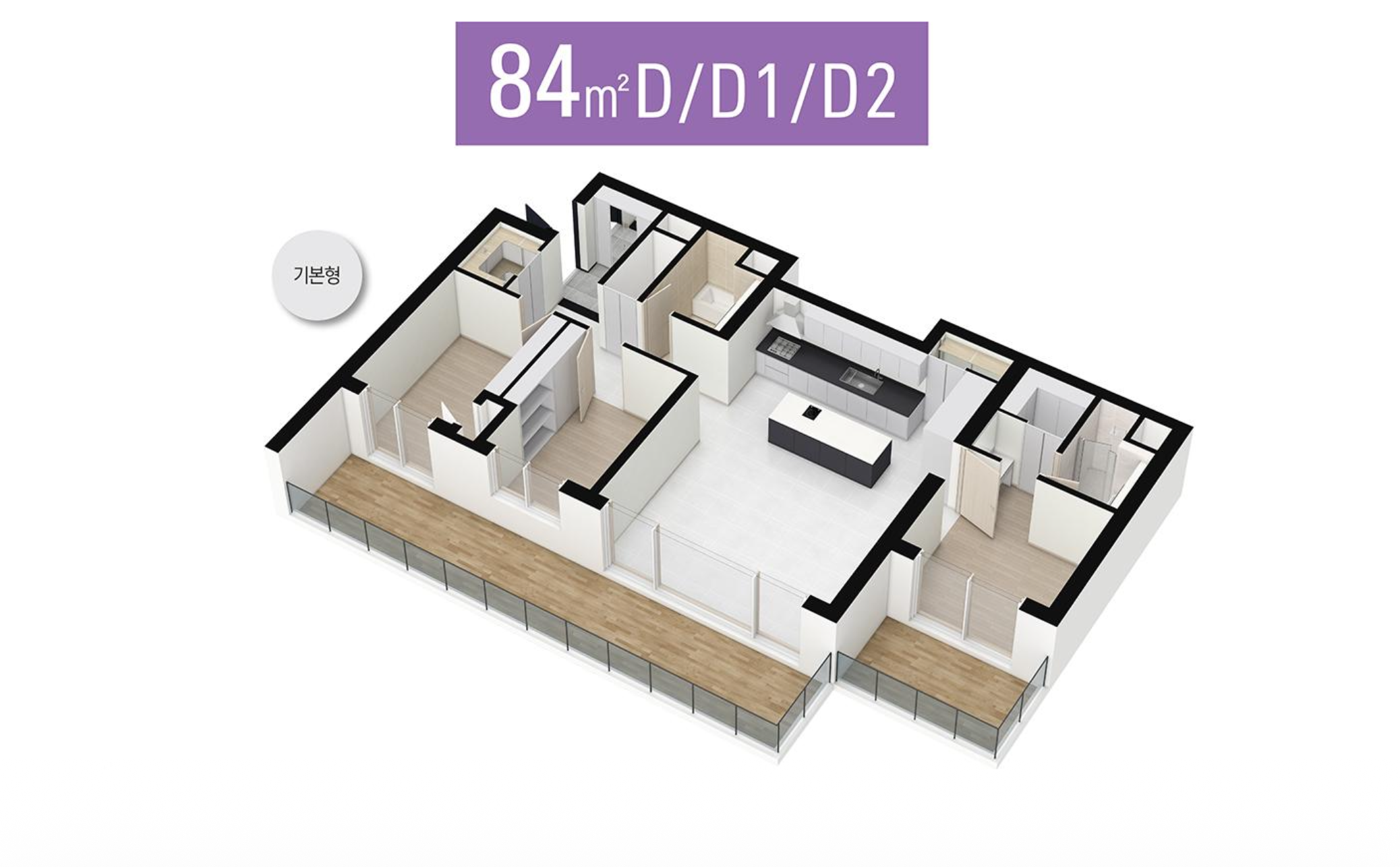남향 위주의 주거동 배치로 채광과 통풍을 확보했으며, 거실 폭 약 5.5m의 와이드 구조로 실내 개방감을 높였습니다. 테라스와 다락 공간을 실사용 면적으로 활용할 수 있어 동일 전용면적 대비 공간 활용도가 뛰어납니다.