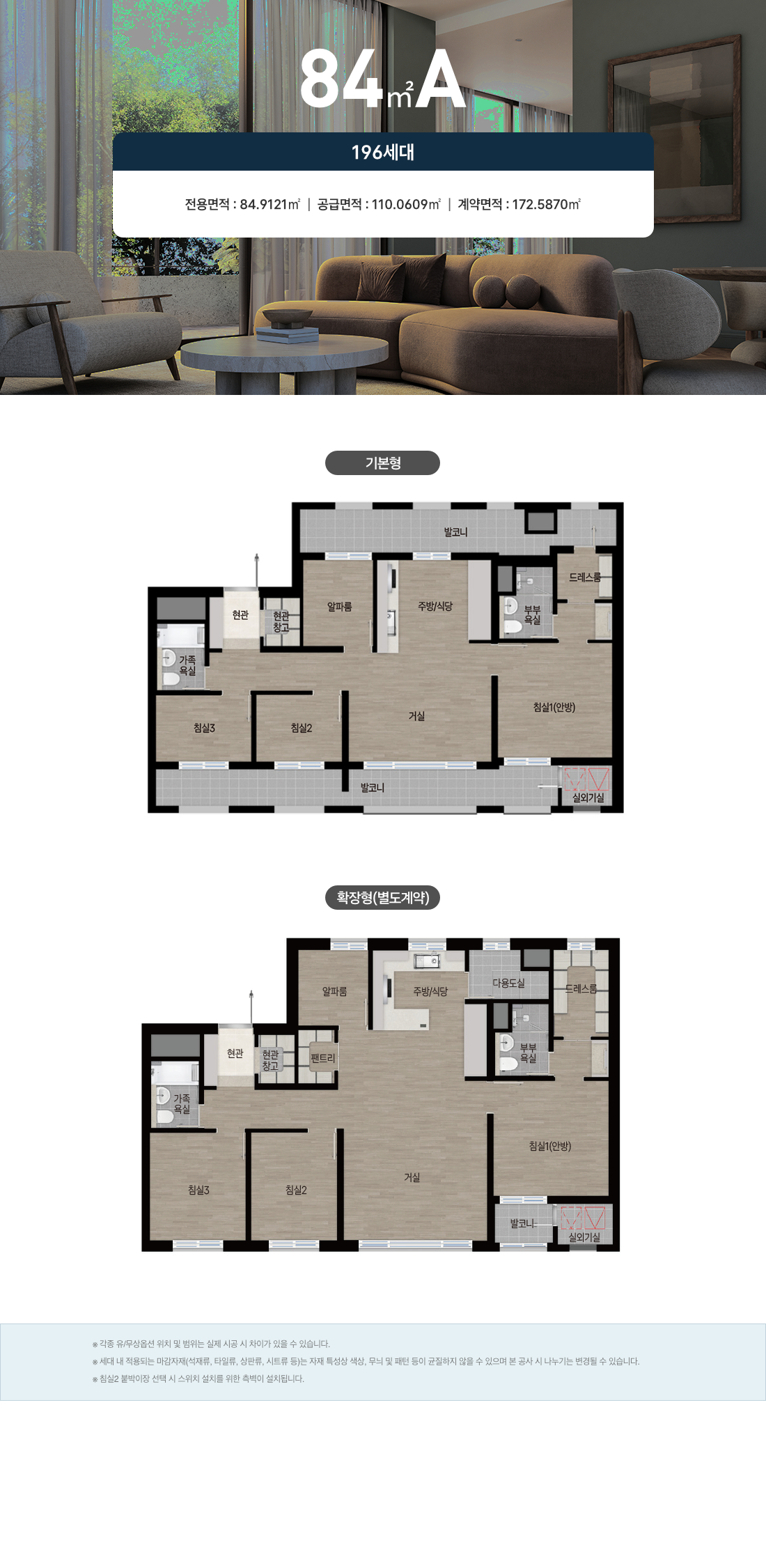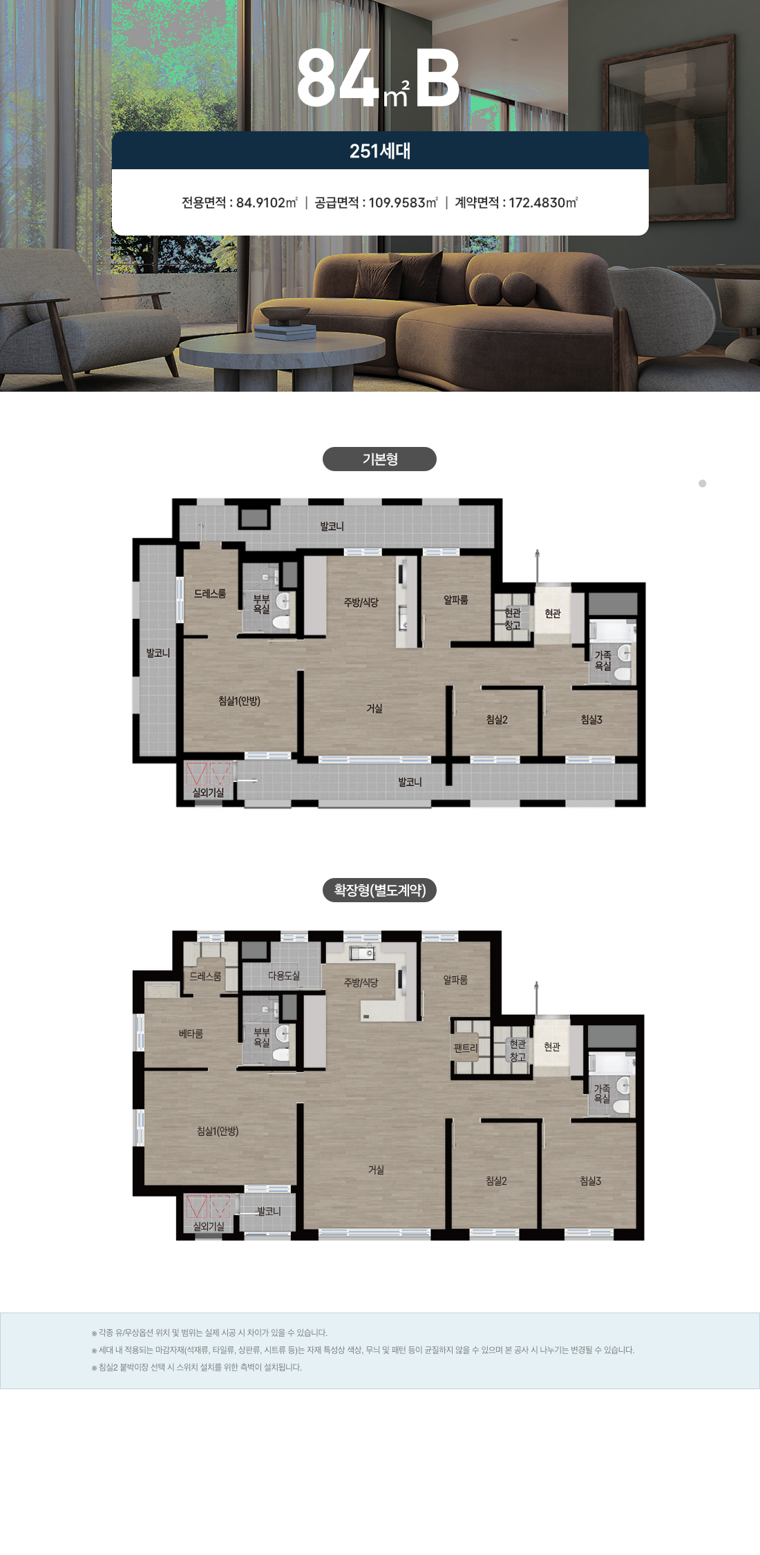 전 주동 필로티 설계를 적용해 엘리베이터 홀까지 계단 없이 진입할 수 있도록 구성했으며 중앙마당과 연계된 동 배치로 개방감을 높였습니다. 남동향과 남서향 판상형 위주 구조에 드레스룸, 팬트리, 알파룸, 베타룸을 더해 공간 활용도를 세밀하게 설계했습니다.